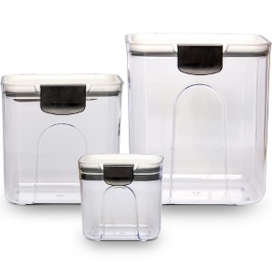 Introducing the Cheer Collection Airtight Baking Containers - your ultimate solution for effortless pantry organization. This set includes 3 clear food storage containers in varying sizes, simplifying decluttering and kitchen organization.