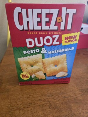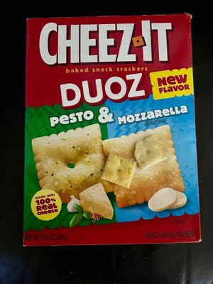 - Discover two different flavors - zesty pesto and smooth mozzarella - in one Cheez-It Duoz box; Want It, Need It, Cheez-It