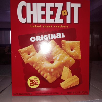 Make snack time more fun with delicious Cheez-It Original Baked Snack Crackers - bite-sized square crackers that are baked to crispy perfection. Cheez-It crackers are the real deal - made with 100% real cheese that's been carefully aged for a one-of-a-kind taste in every bite. A baked snack, Cheez-It crackers are perfect for game time, party spreads, school lunches, late-night snacking and more - the cheesy options are endless. You'll love the smooth, salty flavor of real cheese in every perfectly toasted handful of Cheez-It Original Baked Snack Crackers in a convenient, on-the-go package for easy snacking anywhere.