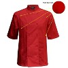 The Chef Code Cool Breeze Side Vent Chef Coat with short sleeves is designed for comfort and functionality in busy kitchen environments. Featuring mesh vent inlays on each side, it promotes excellent airflow to keep you cool during long shifts. Its double-breasted front with cloth-covered buttons offers a professional look while providing adjustable coverage. Practicality is enhanced with pockets on both sleeves, perfect for storing essential tools within easy reach. Crafted from durable 5 oz. Fine Line Baby Twill, a cotton/poly blend, this coat ensures long-lasting wear and easy maintenance, making it a reliable choice for culinary professionals seeking both style and performance.