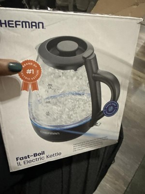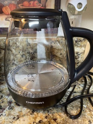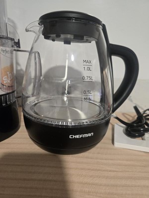 Chefman 1L Rapid-Boil Kettle with Automatic Shutoff - Black: Glass Electric Water Boiler & Warmer, 1500W Tea Heater