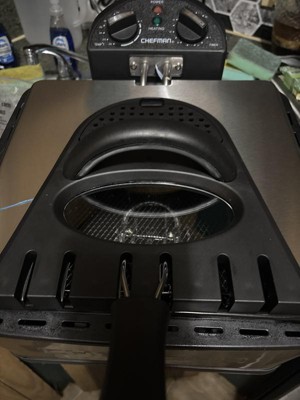 With the Chefman Jumbo Electric Deep Fryer, you can make high-quality fried foods for the family right at home, any day of the week. Having a party with friends or family? Wow them with a tasty fried meal. This fryer is built with an XL 4.5L basket capacity to fry hefty portions of food all at once helping to save you time. With an easy-to-use temperature control, timer, and a viewing window on the lid, this stainless-steel deep fryer turns out perfectly cooked food every time. The extra-large sized four and a half liter capacity can be utilized with a large fryer basket, versatile enough whether eating alone or preparing a family meal. Worried about a splattered, messy kitchen afterwards? We’re way ahead of you- we’ve thought through the frying experience from start to finish which is why this fryer comes with a safety lid with handle and viewing window to check your food so you can stay safe and a eliminate that fried food smell lingering in your home. Once you’re done, clean up by simply popping the removable basket in the dishwasher. The power cord is a magnetic breakaway design for easy clean-up and storage. Frying for a crowd has never been this easy! 1700 Watts/120 Volts RJ07-45-SS-BLACK