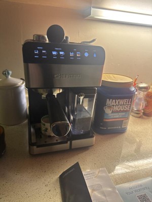 Chefman Barista Pro Espresso Maker Stainless Steel Finish: 1350W Electric Coffee Machine, Dishwasher-Safe Parts, 1.8L Capacity