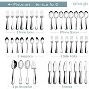 - 44 PIECES SILVERWARE SET FOR 8 WITH SERVEWARE: This Set includes 8 dinner forks, 8 salad forks, 8 dinner knives, 8 dinner spoons, and 8 teaspoons, 2 Serving Spoons, 1 Serving Fork, 1 Pierced Serving Spoon. Perfect for families or restaurants for daily use when dining.