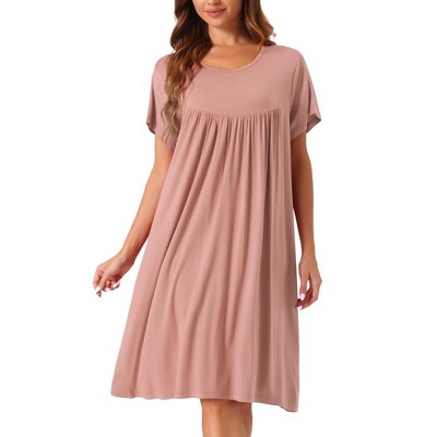 cheibear Women's Cotton Chest Pleat Design Loose Short Sleeve Cozy Nightgowns 2 Pcs Deep Pink XX-Large