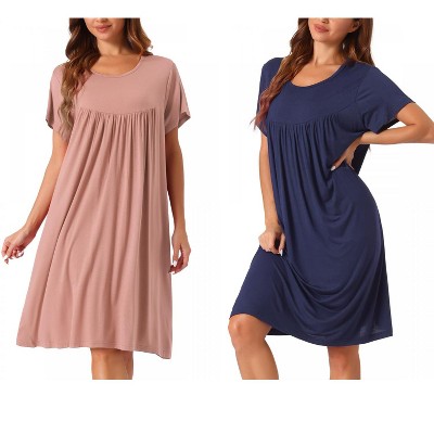 cheibear Women's Cotton Chest Pleat Design Loose Short Sleeve Cozy Nightgowns - 2 of 4cheibear Women's Cotton Chest Pleat Design Loose Short Sleeve Cozy Nightgowns - 3 of 4cheibear Women's Cotton Chest Pleat Design Loose Short Sleeve Cozy Nightgowns - 4 of 4