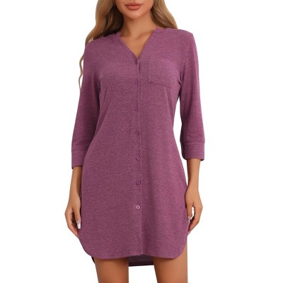 cheibear Women's Casual Long Sleeve Notched Lapel Button Down Lounge Nightshirt