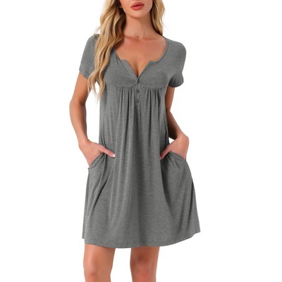 cheibear Women's Notched Collar Button Down Pajama Shirt Dress with Pocket