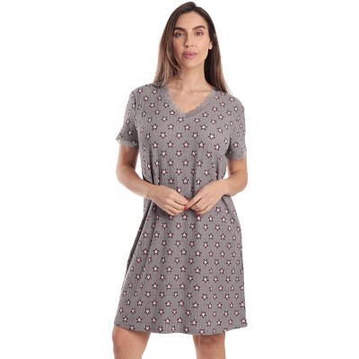 cheibear Women's Pajama Dress Heart Print Lace Trim Short Sleeves Lounge Nightgowns DeepGrey Large