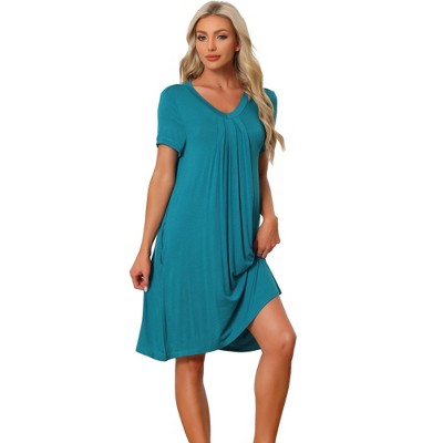 cheibear Women's Short Sleeve Round Neck Soft Nightgown Night Dress with Pocket Blue Medium