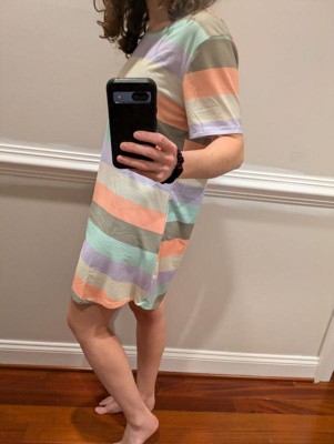 cheibear Women's Curved Hem Round Neck Striped Short Sleeve T-shirt Dress Sleepshirt - 2 of 4cheibear Women's Curved Hem Round Neck Striped Short Sleeve T-shirt Dress Sleepshirt - 3 of 4cheibear Women's Curved Hem Round Neck Striped Short Sleeve T-shirt Dress Sleepshirt - 4 of 4