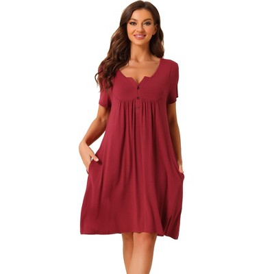 cheibear Women's Soft V-Neck Summer Pajama Lounge Dress with Pockets Nightgowns Medium Red