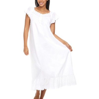 An exquisite high-quality ladies' short-sleeved ruffle nightgown that is reminiscent of the 19th century. A very spacious and roomy gown that is in keeping with this period