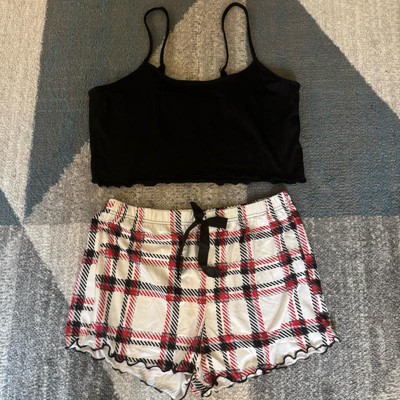 [This review was collected as part of a promotion.] I was pleasantly surprised by how much I like this 3-piece pajama set. The material is lightweight and soft, making it really comfortable for lounging or sleeping. I love that it comes with both shorts and long pants as it is great to have options depending on my mood! The red, black, and white plaid print is adorable. I got these in a size large, and the cami is simple and stretchy with a snug fit while the pants and shorts have a loose, comfortable fit!