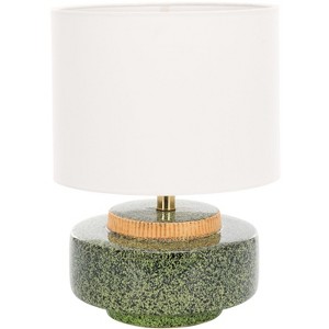 Introducing the Chels Table Lamp- a stunning addition to your home decor that promises to elevate any room it graces. This lamp blends a chic green and brass color palette with a classic ceramic body that exudes style and elegance. The fabric shade ensures a soft, inviting glow that creates a cozy atmosphere, perfect for both work and relaxation. Whether placed on a bedside table or in a living room, the Chels Table Lamp adds a touch of sophistication and charm. Its versatile design complements various interior styles and brings warmth and light to your space.