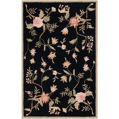 Introducing our charming accent rug, the perfect fusion of tradition and whimsy for any interior. Sized at a versatile 2'-9" X 4'-9", this piece is ideal for adding a touch of elegance and playfulness to your space. The rug showcases an engaging black background that beautifully accentuates its dynamic pattern featuring vivid roosters and lush foliage, creating a captivating pastoral scene.