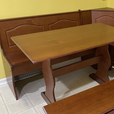 Create a cozy spot for meals and conversation in any corner of the kitchen. The rich honey pine finish on this corner nook provides a traditional look to this highly functional piece. The nook corner bench and nook free-standing bench seats five people comfortably. You can determine the direction of the corner unit during nook assembly. A great family gathering piece.