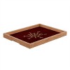 - The Deny trays are 100% sustainable, eco-friendly flat grain amber bamboo wood frame with satin finished printed tray bottom