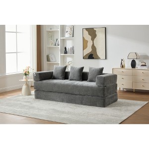 Chenille Folding Sofa Bed with Pillows - 6-in-1 Convertible Floor Couch & Sleeping Mattress with Removable Cover and Side Pocket
