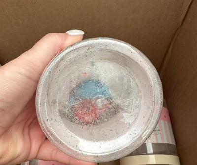 When this arrived, the unopened cotton candy was shrunk to about 1/8 the size of the container and was one tiny congealed rock. Absolutely non-edible.