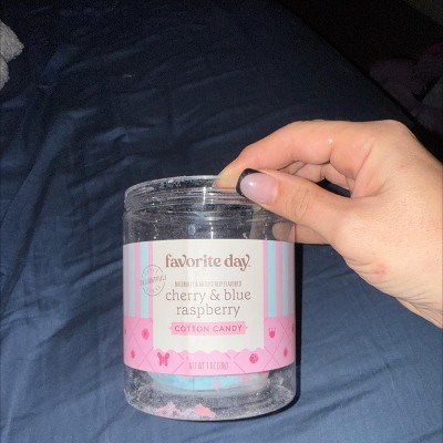Bring a fun taste of the fair home with this Cherry & Blue Raspberry Naturally & Artificially Flavored Cotton Candy from Favorite Day™. This kid-favorite treat comes in a resealable container and is sized right for one person to enjoy. Perfect for parties, this naturally and artificially flavored cherry and blue raspberry swirl cotton candy will bring a smile to young and old alike.