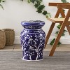 Always chic, deep blue Eastern-Inspired porcelain never goes out of style. Our urn-shaped ceramic garden stool is decorated in a classic cherry blossom pattern. Use them indoors or out as a side table, garden seat, or plant stand.