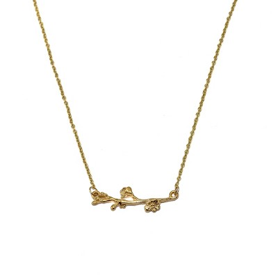 Drape some feminine shine around your neck with this tiny flowering branch, full of blooms, buds, and nodes.