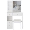 This space-saving vanity table set (29.2" L × 50.4" H) is designed for small bedrooms, featuring a minimalist dressing table and a padded stool (included). Made of sturdy engineered wood, it offers a compact yet functional solution for daily grooming. Note: No built-in lights, sockets, or dryer holder (simplified version). Assembly required (~2 hours).