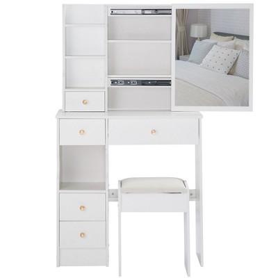 Chery Life 29.2" Vanity Table + Cushioned Stool, Extra Large Right sliding mirror, Multi Layer High Capacity Storage