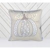 This subtly festive pillow (20"x20") features delicate lace-style pumpkin embroidery in sophisticated neutral tones (taupe, ivory, and pale blue), crafted from a soft linen-blend fabric with a refined texture. Ideal for autumn celebrations or year-round farmhouse charm, it includes a hidden zipper for easy care.