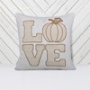 This charming farmhouse-style pillow (20"x20") combines textured "LOVE" lettering with a subtle pumpkin motif, embroidered in neutral beige on a soft linen-blend fabric. The versatile size and concealed zipper make it ideal for seasonal displays or year-round rustic decor on sofas, chairs, or beds.