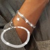 This mesh-textured chain bracelet features a delicate embossed design for a touch of refined elegance. Crafted with an adjustable clasp, it ensures a comfortable and customized fit for any wrist. Versatile enough to elevate both everyday casual outfits and formal evening wear, this piece effortlessly transitions from day to night.