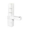 This space-saving vanity tower (39.76"W × 13.19"D × 66.93"H) combines high-capacity storage with a sleek minimalist design, crafted from 15mm particleboard and 3mm MDF backing with a durable melamine finish. It features open shelves, two enclosed drawers, and a large cabinet to organize cosmetics and haircare tools, plus three tabletop holes for hair dryer/styler placement. Ideal for bedrooms, bathrooms, or salon use.