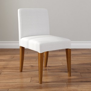 The Chesnee Dining Chair from Plank+Beam offers a versatile seating solution designed for both style and function. Featuring a removable twill slipcover that secures neatly under the seat with a hook-and-eye fastener, this chair allows for easy updates; swap between colors or lengths to match your evolving space. The slipcover is machine washable for stress-free care, making it a practical choice for everyday dining. Built with solid rubberwood legs, an engineered wood seat, and cushioned back and seat, this slipcover dining chair delivers lasting durability and comfort. Easy to assemble and conveniently shipped in one box, the Chesnee Dining Chair from Plank+Beam is a functional piece that adapts to your home with ease.