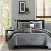 My 21 yr. old son loved this. The only reason I gave it four stars is because in the pictures it looks like the end of the comforter past the buttons is light grey. In reality it’s a gingham- little squares of alternating light and dark grey. We didn’t expect that. I’ve already washed it and it came out beautifully, fluffy and soft. The throw pillows are what made us get this set- that little pop of red really jazzes up his room. It’s very nice looking and the perfect weight for us here in Southern California. Love it.