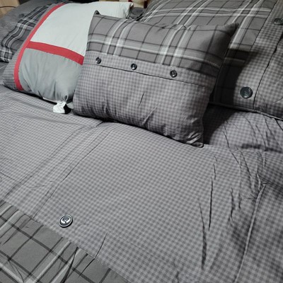 Chet Plaid Print Button Multiple Piece Comforter Set