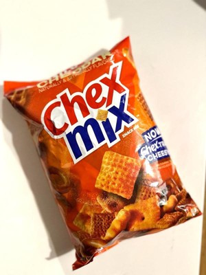 Want something savory, cheesy and out of the ordinary? It's all right here. Chex Mix Cheddar Savory Snack Mix gives you a deliciously unpredictable combination of shapes, tastes, and textures with a cheesy finish. Every bag features crispy Corn Chex, Round Pretzels, Cheese Crackers, Wheat Chex, Square Pretzels, and Squiggle Breadsticks - no two handfuls are alike. Reach for Cheddar Chex Mix when you want quick and easy school snacks. Pour some into a bowl as a party snack, or make it your go-to salty snack when friends come over. Grab a few bags as tasty and convenient road trip snacks. Or stock your pantry so you have some handy for movie watching or gaming. This family size snack bag means there's enough cheesy fun to share. With a unique crunch and flavor in each handful, Chex Mix brings variety to any occasion.