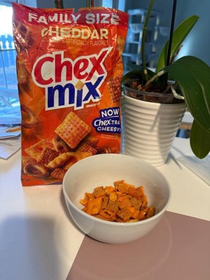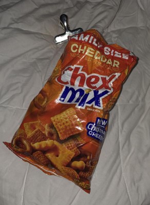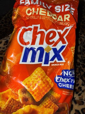 - CONTAINS: One 13.5 oz Family Size bag of Chex Mix Cheddar Savory Snack Mix