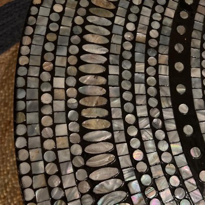 Elegant and contemporary, the Cheyenne coffee table in cream brings new meaning to modern art for the home. The ancient craft of mosaic tile work inspired this pretty piece, which contrasts a top of hexagonal shell tiles with black powder coated legs. Care Instructions: Dust regularly with a soft, dry cloth. Never use oiled or treated cloths on lacquered finishes. Some finishes can be wiped with a damp (not wet) cloth, followed at once by rubbing with a dry cloth to remove fingerprints and smudges. For persistent spots, gently clean with a soft cloth and a solution of water and mild soap, make sure to wipe dry. Use adhesive felt pads, coasters and placemats to protect your furniture.
