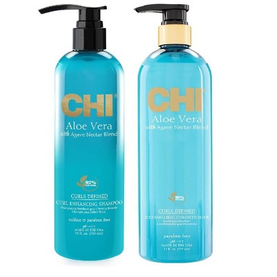 CHI Aloe Vera Curl Define & Enhancing Shampoo & Conditioner Set 11.5oz DUO SET – For Hydrated and Curls, Sulfate and Paraben Free.