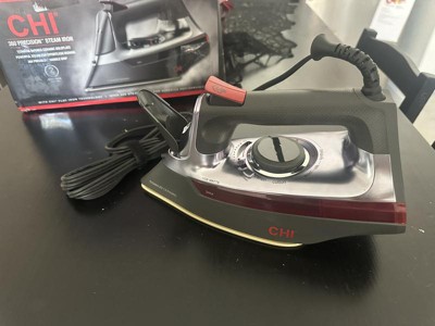 Give your clothes the smooth glide and steaming power of the pros with the CHI® 360 Precision™ Steam Iron. Engineered with CHI's iconic ceramic and titanium technology, the CHI 360 Precision Steam Iron delivers the exceptional ironing performance you can only expect from CHI. The titanium-infused, ceramic soleplate provides durability and an exceptionally smooth glide, while the over 300 steam holes and 1725 watts ensure powerful steam for effortless ironing. As you iron, the 360 Precision™ handle grip maximizes your comfort and control for precise ironing. The temperature control dial with indicator light lets you quickly choose your fabric, and the adjustable steam lever lets you quickly adjust the steam level. Equipped with an extra-long 10 foot cord for easy reach and 3-way auto shutoff for peace of mind. Made with premium materials for long-lasting performance and backed by a 2 year limited warranty.