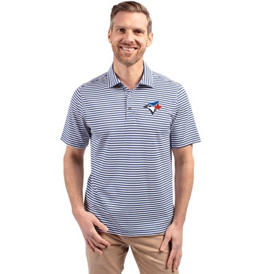 Chicago Cubs Cutter & Buck Virtue Eco Pique Stripe Recycled Mens Polo - Tour Blue - 2X Large