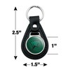 - QUALITY MATERIAL: Our durable round keychain is crafted from leather with a glossy resin-topped emblem featured design shown on one side. Approximately 1.5" (3.8cm) x 2.5" (6.4cm) in overall size, emblem is 1" (2.5cm)..