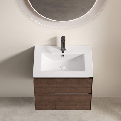 Product Name: ChicFurnit 24 Inch Bathroom Vanity Brown Modern Sleek for Bathroom Vanity Elegant Ceramic Sink Solid Wood Open Style Shelf, Brown, 24"*18.1"*32.7"