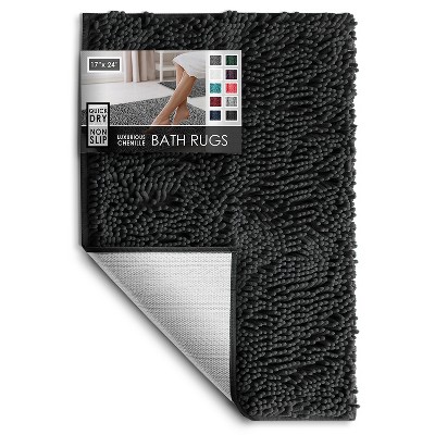 ChicFurnit Bath Rugs and Mats 17x24" Non Slip Bathroom Floor Mat Bathtub Floor Mat 100% Cotton Soft Absorbent Bath Mat, Black, 24"*17"*0.75"