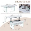 This chic coffee table features a multi-functional lift-top design that smoothly adjusts to the perfect height, transforming into a convenient work desk. Crafted with a premium white marble veneer and tempered glass legs, it offers both style and durability. The hidden storage compartment provides ample space for organizing essentials. With added safety features like non-slip rubber feet and rounded corners, it combines comfort and functionality, making it ideal for home or office use.