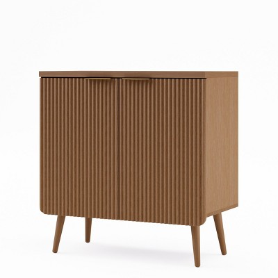 ChicFurnit Decorative Storage Cabinet Elegant Glass Curio Cabinet with Adjustable Shelves for Living Room, Brown, 40.16"*16.15"*10.87"