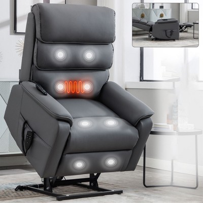 ChicFurnit Living Room Chair Arm Accent Chair Dual Motor Lift Recliner with Massage Heat and Cup Holders for Living Room, Gray, 36.22"*39.76"*42.51"