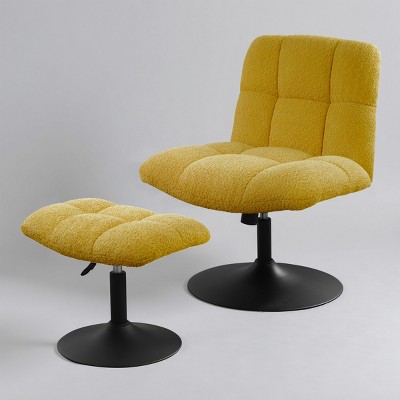 ChicFurnit Living Room Chair Arm Accent Chair Manual Recliner Rocker Swivel Body Massage Genuine Leather for Living Room, Yellow, 30.31"*23.23"*22.05"