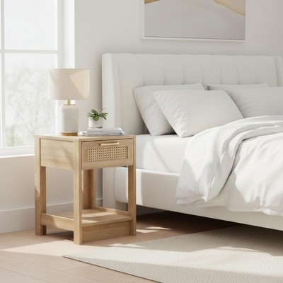 ChicFurnit Nightstands Rattan Style Bedside Table Night Stand with Drawers and Shelf End Table for Bedroom Storage, Multicolored, 17.7"*15"*23.2"